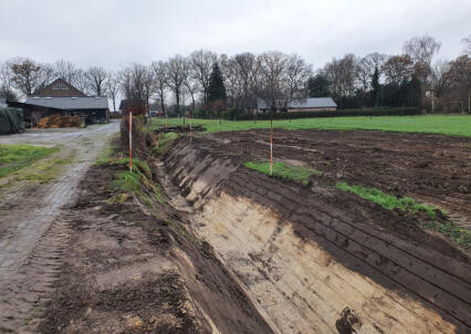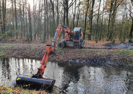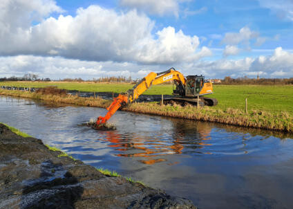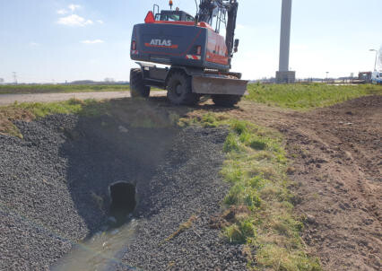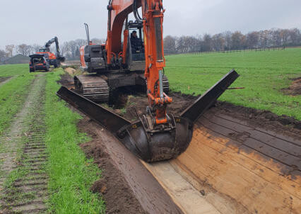 Voor een veilige en efficiënte werkuitvoering hebben wij daarnaast rijplatenbanen aangelegd, zodat machines en transportvoertuigen stabiel en zonder schade aan het terrein konden opereren. Ook zijn de aanwezige duikers grondig gereinigd om een optimale waterdoorvoer te garanderen en de functionaliteit van het watersysteem te herstellen.